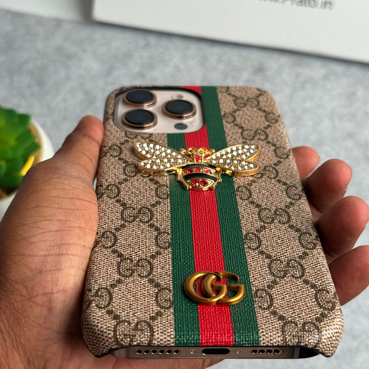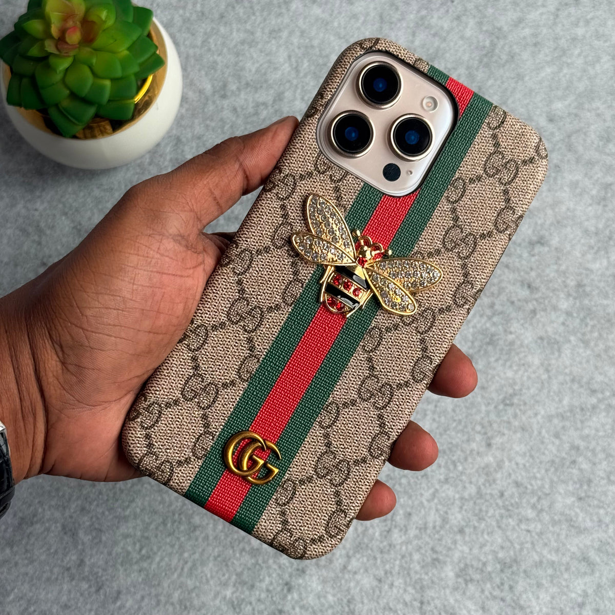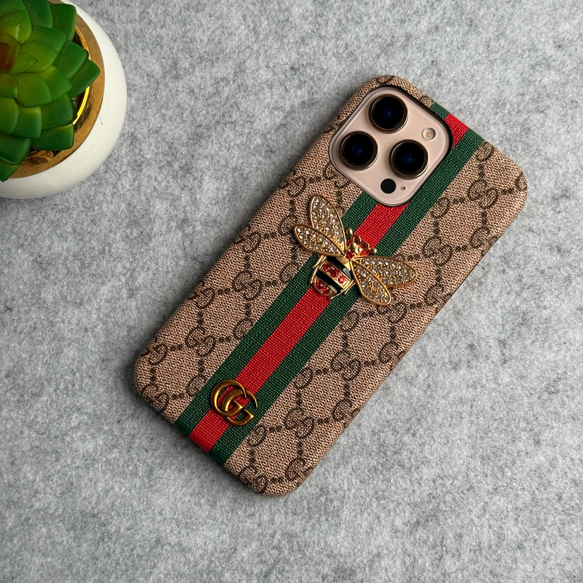 iPhone 15 Series Luxury GG Brand 3D BEE Stripe Design Case Cover