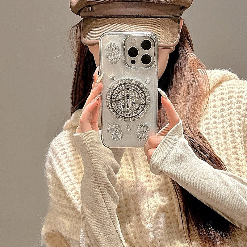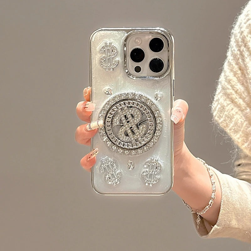 iPhone Premium Glitter Diamond Rotating Silver Dollar Case