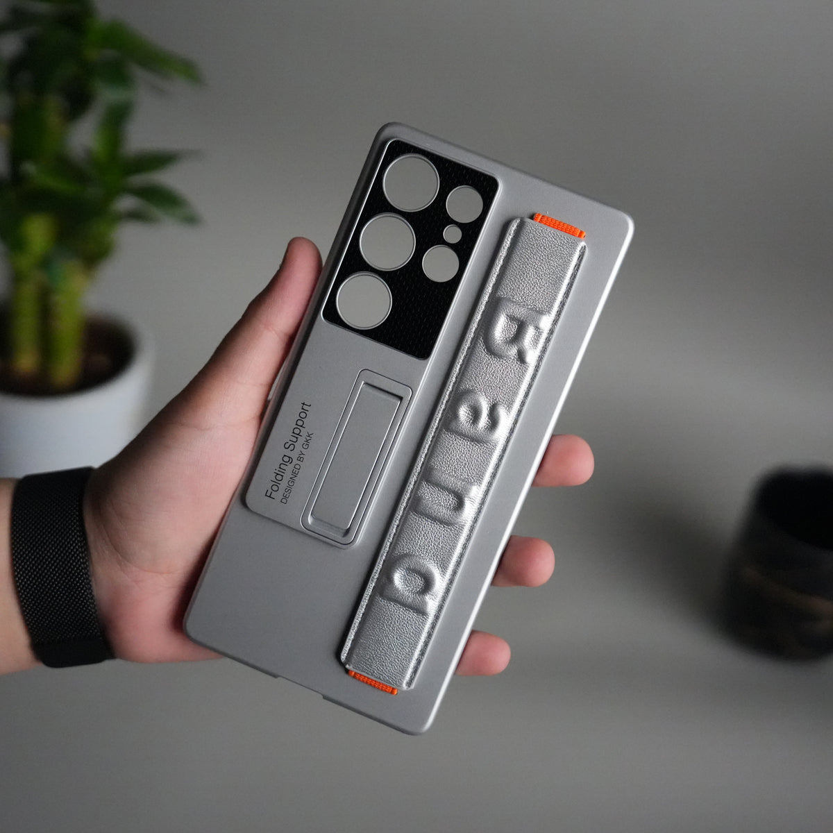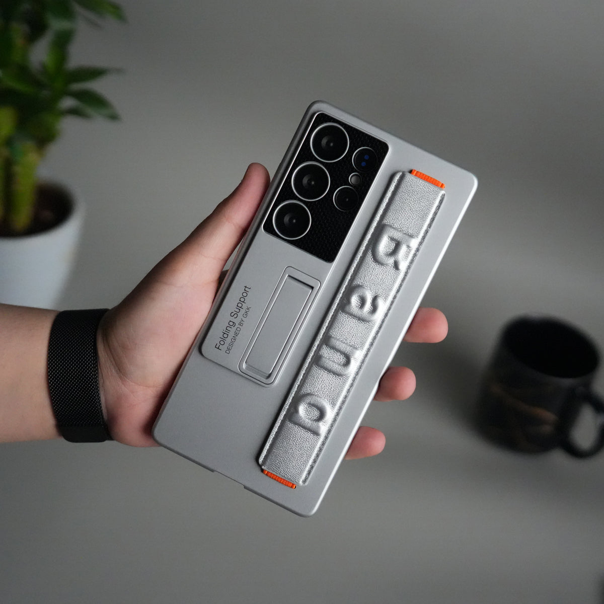 Get the perfect mix of style and functionality with this Galaxy S25 Ultra protective case. Designed with a premium band holder strap for a secure grip and one-hand use, plus a foldable kickstand for hands-free viewing, this case is built for convenience. The sleek finish with metallic accents adds a modern luxury touch while ensuring shockproof protection against drops and scratches.
